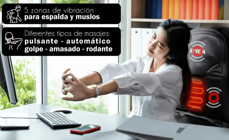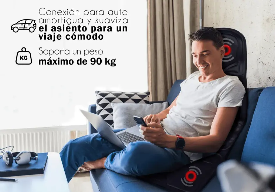 Diseño Ergonómico de 5 Niveles: adapta la intensidad y el tipo de vibración para aliviar hombros, espalda, cintura y piernas según tus necesidades.